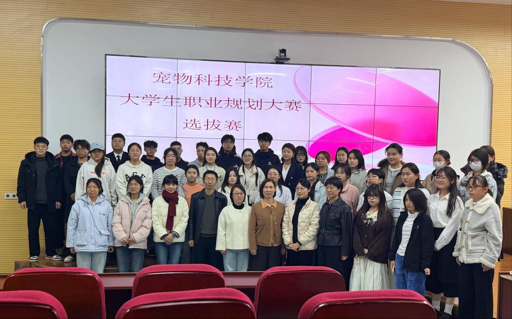 11月15日,宠物科技学院大学生职业规划大赛选拔赛在二号教学楼阶梯教室顺利举行。招生就业处左恒芬处长,宠物科技学院副书记钟欣书记,招生就业处创新创业科科长徐群,第二届职业规划大赛金奖指导教师庄青叶担任本次比赛评委。