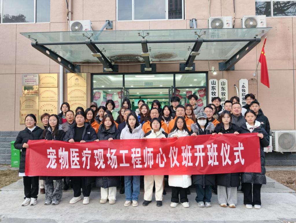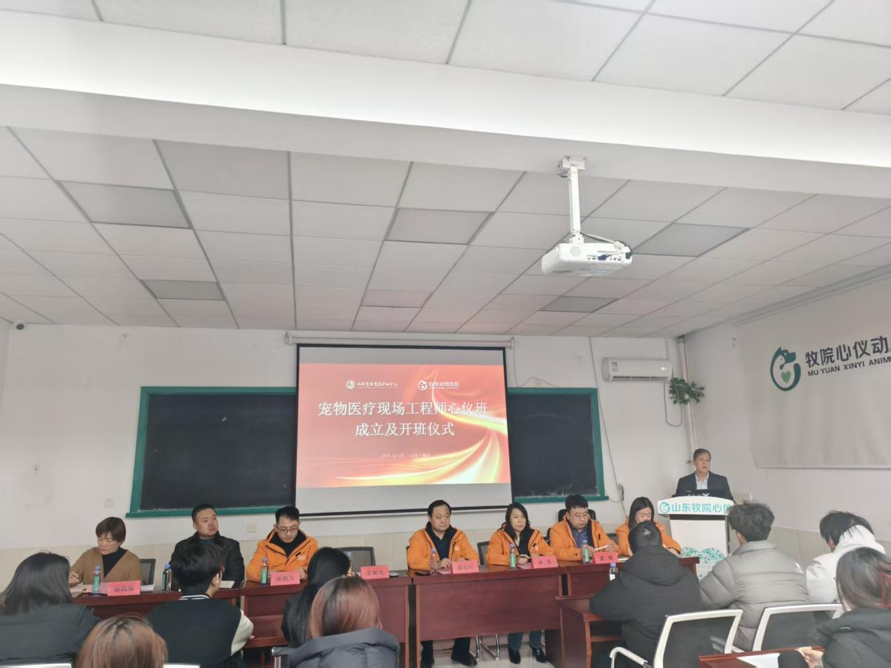 12月26日,我院与山东心仪动物医院合作共建的“宠物医疗现场工程师心仪班”开班仪式在牧院心仪动物医院举行。宠物科技学院副院长杨金保主持仪式,2025级宠物医疗技术专业30名学生参加。