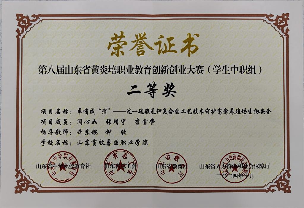 第八届山东省黄炎培职业教育创新创业大赛二等奖